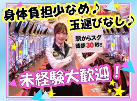 仕事内容 ライフスタイルに合わせて働けます♪ お仕事は接客・お客様とのコミュニケーション、 遊技台のメンテナンス等がメインです! 玉運びなどの重い物の取扱いはありません♪ 身体への負担が少ないので 主婦さん等の女性スタッフも働きやすいんです! 直近で新しい方も続々入社しているので 安心して一緒に仕事を覚えられます♪