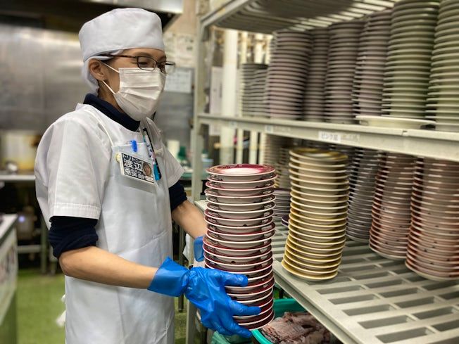 回転寿司店のキッチン補助スタッフ