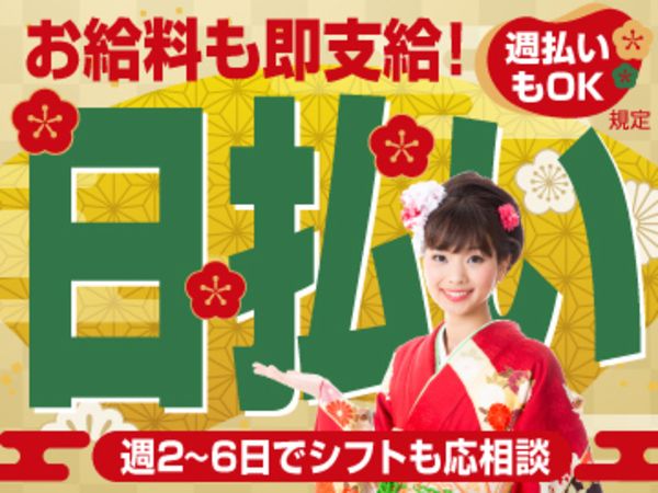 シフトは2週間ごとの完全希望制(週2日~OK)!日払い・週払い・稼働分前払い/規定!短期・長期の相談OK!
