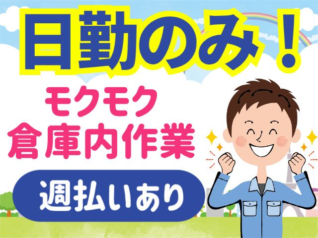 仕事内容 【人気のモクモク倉庫内作業】 超有名なグループ企業で働くチャンス! 日勤のみでも高収入! 月収27.5万円以上可! 「おすすめポイント」 【日勤のみ】 勤務時間は7:00~16:00 日勤のみで夜勤はありません! 平日にお休みがあるので、 銀行や役所などの用事を済ませやすいのも 嬉しいポイント! 【高時給1,350円?1,688円】 日勤固定でも安定して稼げます! うれしい週払い制度あり! 【1Rアパート・寮完備】 一人暮らしを始めたい方必見! 赴任費は会社が負担いたします!(規定あり) 遠方からのご応募もお待ちしております。 【お仕事詳細】 物流倉庫内での商品の入出庫業務をお願いします。 フォークリフトだけでなく、 仕分け・ピッキングなどの体を動かす作業もあります! <リーチフォークリフト作業> ・商品を指定の場所に入庫、保管 ・パレットで荷物を積み込む作業 <ハンディーを使用した倉庫内作業> ・仕分け 商品を出荷先ごとや種類ごとに分ける ・検品 商品に不良品や数量・品番に 間違いがないかの確認 ・ピッキング 商品を指定の場所から取り出す作業 【丁寧なレクチャーで安心!】 入社後はOJT研修にて、 作業手順をイチから丁寧に指導します。 経験の浅い方、ブランクがある方も 先輩社員がしっかりサポートしますので ご安心ください! 【幅広い年代活躍中】 20代・30代の若い世代から、 50代のミドル・中高年まで、 男女問わず幅広い年代が活躍中! 【こんな方におすすめ】 ・今は夜勤だけど日勤に切り替えたい ・フォークリフト免許はあるが経験が浅い ・倉庫内作業経験がある ・モクモク作業が好き ・フォークリフト作業だけでなく体も動かしたい 【来社不要のWEB面接・出張面接】 希望の時間で自宅にいながら 気軽にお仕事の詳細を確認したり 応募が出来ますので、 まずはお問い合わせください! ご応募いただいた情報を元に、 選考方法について担当よりご連絡します。 【ミライク株式会社とは】 全国主要都市で展開しており、 当支社は北海道・東北・関東を中心に 人材派遣をしております。 製造・工場関係や事務職、販売職、 アルバイト・パート、派遣、正社員希望、 短期希望など柔軟にお応えいたします。 他にも、未経験・無資格OK、 高時給・高収入で残業なし、土日祝休み、 中高年が活躍できるお仕事の紹介など 何でもご相談ください。 未掲載の求人もあるので、 まずはお問い合わせください。