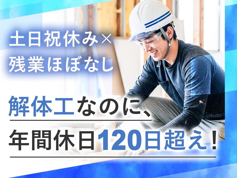 仕事内容 \ しっかり稼げてちゃんと休める解体工 / 「未経験から手に職をつけたい」 「ブラックな働き方は避けたい」 「ゆくゆくは施工管理などキャリアも築きたい!」 そんな方にもピッタリ! 未経験OKの内装解体のお仕事です◎ はじめは掃除やバラしたものの仕分けなど、簡単な補助作業からスタート。 慣れてきたら、壁を壊す作業や工具を使う工程も少しずつお任せします。 < 主なお仕事 > 戸建てやビル(4〜5階建)、商業施設などの内装解体を担当します。 ・壁や床、造作物などの内装解体 ・バラした資材の仕分け ・清掃 ・産廃の積み込み ・有資格者は重機作業など(資格手当あり♪) 現場は東京・千葉・埼玉・神奈川がメイン。 短い現場で3日〜長い現場で3ヶ月とさまざまなので、常に新鮮な環境で働けます。 < ここが魅力!> ◆ 未経験でも安心スタート 工具の名前すら分からない…そんな方でも大歓迎! まずは掃除や仕分けなどの簡単作業からスタートし、できることを少しずつ増やしていけます。 未経験でも日給1.3万円スタートで安定収入なのもポイント♪ 頑張りが給与に直結するので、気づけば立派な職人さんに成長できます。 ◆ 残業ほぼなしでプライベートも充実 早く帰りたい職人さんが多いので、ダラダラ無駄な残業文化はありません! 仕事後のジム、推し活、ゲーム、家族時間など… “自分の時間” をしっかり持てます。 メリハリつけて働けるので、無理なく続けやすい環境です◎ ◆ 年間休日120日以上&柔軟な働き方 週休2日制で今年度は126日休み♪ 急なお子さんの体調不良などの突発休にも柔軟に対応しています◎ 反対に「とにかく稼ぎたい!」という方は週6日勤務も相談可能です。 独身のうちはガッツリ稼ぎ、家庭を持ったら完全週休2日など、ライフステージにも合わせて働けます! ◆ 手に職だけじゃない!キャリアUPの道も 現場で経験を積めば、施工管理・現場リーダー・育成担当など、上を目指せる道をしっかり準備しています。 国家資格の取得も会社が支援! 資格手当も加算されるので “経験=収入UP” に直結。 現場職人だけで終わらず「安定 × 成長 × 稼げる」を同時に叶えたい方は、ぜひチャレンジしてください!