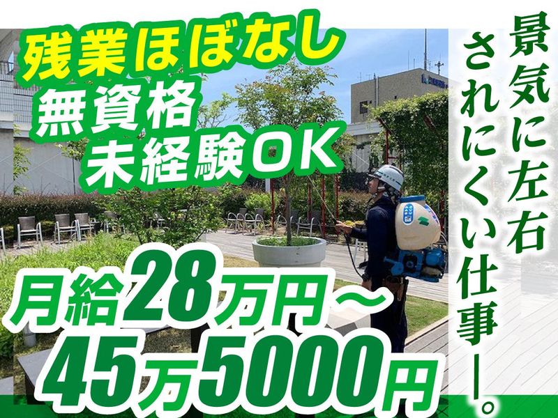 仕事内容 【未経験の方もご安心ください】 都会を行き交う人々の心を 和ませるちょっとした緑地。 そんな緑地のメンテナンスをお任せします。 ◆未経験大歓迎 ◆景気に左右されにくい仕事 ◆取引先も業績も、仕事の依頼も安定 ◆四季ごとに多様な仕事あり (年間を通し仕事量は安定!) ◆基礎から丁寧に教えます ◆資格取得支援&キャリアUPも応援 ◆残業ほぼなし ◆繁忙期を除いてお休みが充実 ◆仕事もオフも大切にできます! 【みんなの憩いの場を守る仕事】 ◆ビルの出入り口や屋上 ◆ショッピングセンターの休憩スポット ◆学生が過ごす大学構内 など 人々がホッと一息つける緑地の 保守管理・メンテナンスのお仕事です! \担当する緑地は/ 東京・神奈川を中心とした 民間企業のビルや大学、公共施設など。 大手企業やショッピングセンター、 官公庁など取引先は安定しています! (有名企業の案件も多数) ⇒Point 現場へは事務所から車で移動します。 【イチから丁寧に教えます】 最初は先輩のアシスタントとして 一緒に現場を回りながら、 道具の扱い方を覚えつつ、 仕事に慣れていただきます。 基本的に2~5名単位で現場を担当。 すぐに先輩に質問できます! できる仕事からお任せしますので、 心配しないでくださいね。 1ヶ月経ったころには、 機械を使い木を切ったりできるように。 段階的にスキルアップできます。 ⇒Point 資格取得支援もあるので、 無資格・未経験から手に職をつけ、 長く活躍できます! もちろん収入UPも狙えます。 ⇒Point 年間スケジュールはほぼ決まっているので 1年間で一通りの仕事を覚えられます。 【こんなやりがいがあります】 川崎市の商業施設や公園など 有名な施設も請け負っているので 「ここ、私たちがキレイにしているんだよ」 なんてちょっと誇らしい気持ちにもなれる仕事です。 年間を通じて変化する 自然を相手にする仕事なので、 飽きが来ることはありませんよ♪ ⇒Point メンテナンスの仕事以外に 造園の仕事に携わるチャンスあり! また意欲や適性、ご希望に応じて 案件担当者(リーダー)へ ステップアップすることも可能です。 キャリアプランは相談して決めていきましょう!