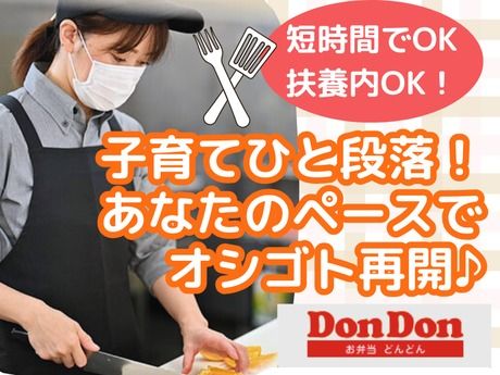 その他 未経験OK、新卒・第二新卒歓迎、フリーター歓迎、主婦・主夫歓迎、午後のみOK、短時間OK、長期歓迎、平日のみOK、土日祝のみOK、週3日以内OK、週4日以上OK、シフト制、昇給あり、社員登用あり、制服あり、車・バイク通勤OK、副業OK、髪型自由、履歴書不要、扶養内勤務OK、主婦パート活躍中、アルコール消毒液完備、週2・3日からOK、面接1回のみ、車通勤OK、社割あり 【ブランド名】 どんどん 【事業内容】 持ち帰り弁当店「お弁当どんどん」の運営