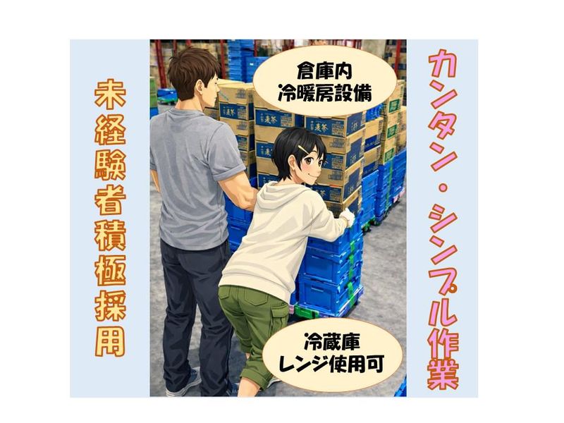 仕事内容 ⋄✧⋄⋆⋅⋆⋄✧⋄⋆⋅⋆⋄✧⋄⋆⋅⋆⋄✧⋄ \週4日以上×平日のみ!/ 清涼飲料水の仕分けスタッフ ☆リーダー候補を募集中☆ ⋄✧⋄⋆⋅⋆⋄✧⋄⋆⋅⋆⋄✧⋄⋆⋅⋆⋄✧⋄ \腰の負担もナシ♪/ 倉庫内での清涼飲料水の仕分け・ ピッキング作業をお願いします。 ペットボトル飲料を1本ずつ専用の箱に入れるだけ! 高さ調整のできる台車があるので、 腰への負担も心配ありません◎ 今回は上記に加えて、リーダー業務を お任せします!メンバーと同様に 上記の仕分け/ピッキング作業を 行いながら、当社メンバー全体への指示出し(作業の割り振り・声かけ等)をお願いします。 男性・女性ともに活躍中! 繰り返し作業が中心なので、未経験の方でも すぐ慣れていただけます★ 学生さん・主婦さん・シニアの方も活躍中✨ 幅広い世代が働きやすい職場です♪ 「コツコツ作業が好き」 そんな方にピッタリのお仕事です◎ ◆1日の流れ(リーダー業務あり)  ̄ ̄ ̄ ̄ ̄ ̄ ̄ ̄ ̄ ̄ ̄ ̄ ̄ ̄ ̄ 出社して勤務開始 (天候に左右されない屋内作業) ↓ 当日の作業内容を確認し、 当社メンバーへ指示出し ↓ 飲料水を1本ずつ箱詰め (台車ありで安心♪) ※リーダーも作業に入りながら全体の進捗をチェック ↓ お昼休憩 ↓ 午後の作業スタート (進み具合を見て声かけ・調整・フォロー) ↓ 作業終了!片付け・最終確認/翌日の準備共有 (残業ほぼなし) ◆勤務条件  ̄ ̄ ̄ ̄ ̄ ̄ ・8:30~17:30(実働8時間/休憩60分) ・平日のみ ・週4日以上 ・残業基本なし◎ ・車、バイク、自転車通勤OK!✨ ◆給与  ̄ ̄ ̄ ̄ 時給1450円~(別途交通費支給) \こんな方にピッタリ✨/ ✅ コツコツ作業が得意な方 ✅ 平日のみ働きたい方 ✅ 腰への負担が少ない軽作業を 探している方 ✅ 未経験から安心して始めたい方 ◆会社について  ̄ ̄ ̄ ̄ ̄ ̄ ̄ ̄ 当社は創業60年以上のマルノウチグループの一員。 大手飲料メーカーとの取引をはじめ、 300名を超えるスタッフが活躍中です。 「ここで働いていてよかった」 と思っていただけるように、 安心して働ける環境づくりに力を入れています。 気になった方はぜひお気軽にご応募ください♪ あなたと一緒に働ける日を楽しみにしています◎