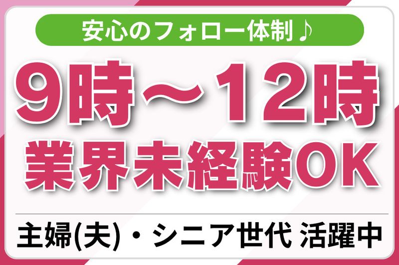 ✅9時~12時 ✅未経験者歓迎 ✅週5日勤務(平日のみ) ✅扶養内勤務OK