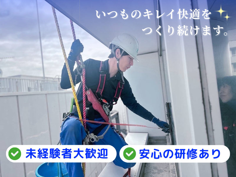仕事内容 \\ 求人のポイント // ✅現場へは直行直帰 ✅賞与年2回あり ✅残業はほぼナシ ✅未経験歓迎!充実の研修 ✅業界大手の安定・安心 【オフィスビルなどの窓ガラス清掃】 オフィスビル、マンションや商業施設等の 窓ガラス清掃をお願いします! 最初は先輩と一緒に行動し、 作業の流れやコツを掴んでいきましょう! レベルに合わせた研修制度もあるので、 初めての方も安心して始められます♪ 【応募の理由は自由でOK!】 ・とにかく、高い所が好き ・新しい仕事に挑戦したい ・残業少なめの職場がいい ・安定して長く働きたい etc. どんなきっかけでも大歓迎◎ ╭━━━━━━━━╮ ✧お仕事のポイント✧ ╰━v━━━━━━╯ ⏩現場・直行&直帰  ̄ ̄ ̄ ̄ ̄ ̄ ̄ ̄ ̄ ̄ 資材課というチームが作業現場に 資材を届けます。なので、 事務所に出社することなく現場直行! 現場も17時前に終わることが多く、 そこから直帰できます! 時間にゆとりが持てるので、 保育園に、朝・夕の子供の送り迎えを している社員もいますよ。 ⏩安全を最優先に  ̄ ̄ ̄ ̄ ̄ ̄ ̄ ̄ ̄ ̄ 初めは地上での見張り作業や、 1階などの低層部の 窓ガラス清掃からスタート。 高所での作業は、しっかりとした 研修の上、作業手順・安全ルールを 習得してから行うようになります。 安全第一で取り組めるよう 丁寧に指導しますので安心です◎ ⏩資格取得も応援  ̄ ̄ ̄ ̄ ̄ ̄ ̄ ̄ ̄ ̄ 入社後に必要な資格は 会社が全額負担で取得可能! 例) ・ゴンドラ取扱業務特別教育 ・ロープ高所作業特別教育 ・高所作業車運転特別教育 ・職長・安全衛生責任者資格 etc. キャリアアップを目指す方にも ぴったりの環境です✨ ⏩作業場もやりがいも高い  ̄ ̄ ̄ ̄ ̄ ̄ ̄ ̄ ̄ ̄ ̄ ̄ ̄ この仕事でないと入れない場所、 (高層ビル、タワマンの屋上など) 地上150メールの高さから絶景は 圧巻で気持ちいい! 部屋の中から紙に書かれた 「ご苦労様!」「ありがとう!」の メッセージに感動! 地上から見上げられる子供の視線、 「頑張れ~」の声に ちょっとしたヒーロー気分に! ⏩長~く現役で働ける  ̄ ̄ ̄ ̄ ̄ ̄ ̄ ̄ ̄ ̄ ̄ ̄ ̄ 力仕事は少なめで体の負担も少ない。 だから、還暦過ぎても現場で作業する 社員も多くいます。 管理にまわるのではなく、 生涯現場主義も可能ですし、 また、作業員から本社の広報に異動に なった社員もいます。 女性社員では産休・育休を経て 現場に復帰した実績もありますよ。 【こんな会社です。ビルワーク】 設立:1974年(昨年で設立50年) 売上高:19億円(グループ売上:103億円) ※2025年3月期 従業員:511名(グループ全体:753名) ガラス清掃のスタッフだけで120名強の ガラス清掃業界の大手です。 会社の規模だけではなく、 社員の技術も自慢なんです! 3年に1回行われる、 「日本ガラスクリーニング選手権」 2023年に行われた第19回大会において 上位10名中、6名がビルワーク社員が 占める!という結果を残しました!