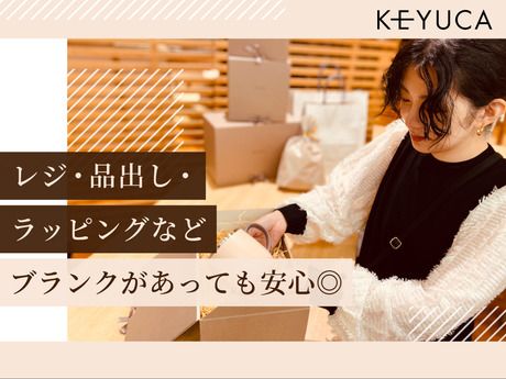 仕事内容 土日は家族との時間も大切だけど、 少しだけ“自分の時間”も欲しい。そんな方にちょうどいい働き方。 『Simple & Natural』がテーマのライフスタイルショップ KEYUCA(ケユカ)での販売スタッフ募集です。 ―――――この求人のPOINT――――― ・15時までの勤務OK *夕食準備にも間に合う ・土日はどちらかでOK *ちょっとした自分時間として働けます ・扶養内OK *実働6時間未満で効率よく働ける ―――――――――――――――――― <主な仕事内容> *接客・レジ *陳列・整頓・ディスプレイ *ラッピング *清掃 できることから少しずつお任せするので、 販売未経験やブランクがある方でも安心してスタートできます◎ 基本は「見守り接客」が中心なので、 お客様に売り込む必要はありません。 「このマグカップの色違いはありますか?」 「このサイズの水切りカゴはありますか?」 といったご質問にお答えできるようになればOK。 まずはお客様のお探しの商品をご案内するところからスタート。 慣れてきたら、少しずつ接客の幅を広げていきましょう◎ 落ち着いた雰囲気のお店なので、 接客に追われすぎることもありませんよ。 ―――――――――――――――――― 【この仕事の魅力】 おしゃれなキッチン用品やインテリア雑貨など、 暮らしを彩るアイテムに囲まれて働けます。 週1回新商品が入荷するため、 飽きることなく楽しみながらお仕事ができます♪ 本社から届く商品解説動画もあるので、 使い方やこだわりポイントも自然と理解でき、 自信を持ってお客様にご案内できるようになります。 ―――――――――――――――――― 【売り場づくりについて】 接客だけでなく、 売り場づくりを楽しめるのもこの仕事の魅力。 実際に、スタッフに「どの業務が好き?」と聞くと、 「売り場づくり」と答える方が多いのも特徴です。 同じ商品でも、 ・きれいに整然と並べる ・関連商品を組み合わせて“暮らしのシーン”をつくる など、見せ方ひとつで売れ方が変わる奥深さがあります。 「どうしたら手に取りたくなるか」 「どんな組み合わせなら魅力が伝わるか」 そんなことを考えながら、 自分なりの工夫を活かせる環境です。 「ディスプレイを考えるのが好き」 そんな方にも、楽しんでいただけるお仕事です◎ ―――――――――――――――――― 【働きやすさ】 既存店舗では、5年以上続けているスタッフも多く、 長く働ける環境が整っています。 ※今回はオープニング募集ですが、 同じように安心してスタートできる環境を整えています◎ スタッフが長く続けている理由は、 無理なく働ける環境があるから。 ・残業なし ・シフトは柔軟に相談OK ・同世代スタッフが多数活躍中 20代後半~40代の女性スタッフが中心で、 優しい雰囲気の中で働けます◎ 採用で大切にしているのは、 「笑顔になるポイントが合うかどうか」。 だからこそ、気の合う仲間と 自然体で働ける環境があります。