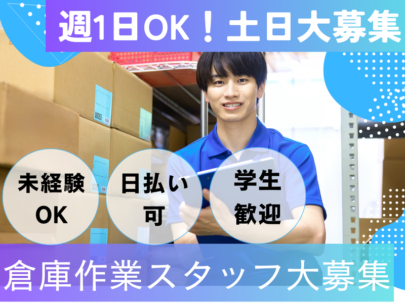 仕事内容 ・・・・☆・・・・☆ ・・・・☆ ・・・・ ✅土日勤務できる方大募集!! 平日の勤務できる方も募集しております♪ ✅WワークOK♪ ✅週1日~応相談 ✅「お財布がピンチ!」 →そんな時に嬉しい日払い・週払いも可◎ ✅履歴書不要!即日勤務OK →職場見学も開催中!まずは気軽にご応募を♪ ・・・・☆・・・・☆ ・・・・☆ ・・・・ / 基本シフトを決定し安定して勤務する事が出来ます! 隔週での勤務、曜日ごとの時間調整などの相談OK◎ \ チルド倉庫内(10℃~5℃)で、 冷凍食品の仕分けや梱包・伝票貼付作業を お任せします! ※防寒具貸与あり! 【具体的な仕事内容】 冷凍食品などの 食品の仕分け業務や出荷伝票の貼付け作業をお願いします◎ 卸業者から届いた食品を 各スーパーなどに届けるために 仕分けていただくようなイメージです。 ⭐一日の流れ(例) 〇検品・ピッキング 商品を種類別に分類したり、 破損がないかなどチェックをします ↓ 〇仕分け・梱包作業 配送先のスーパー別に商品を仕分けし、 梱包していきます。 ↓ 〇出荷準備など 仕分けした商品の最終確認を行い、 出荷先を確認して伝票を貼り付けます。 ✨好きな時間に働きやすい✨ 9:00~20:00の間で 好きな時間に働けるので プライベートとの予定調整がしやすい! バイトデビューやWワーク、扶養内勤務も歓迎! ✨未経験歓迎✨ ハンドスキャナーを使って 商品をスキャン・仕分けするだけ! 機械操作が苦手な方でも、 スキャナーを使わずに 商品のシールを見て仕分けするだけでもOKです! 研修制度もあるので、 倉庫内作業が全くの未経験という方でも 安心して働いていただけます◎ 景気に左右されにくい物流業は、 長く安定して働きたい方にピッタリ!