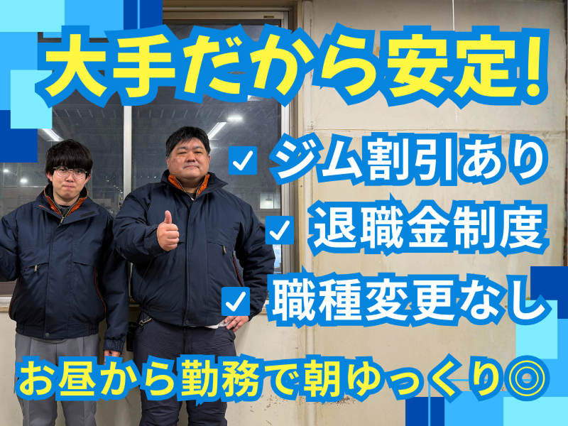 【大手グループの正社員】お昼から勤務|賞与年2回(実績5か月分)年収380万~500万円|免許不要|将来フォークリフト取得可能
