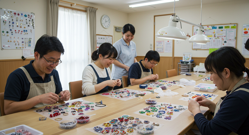 職場環境 就労継続支援B型作業所「にょっき」は戸建てを活用したアットホームな事業所です。 プロ野球選手が使用して折れてしまったバットを利用した加工作業やアクセサリーなどのハンドメイド品の制作、商品の袋詰め・梱包などを行う作業所です。 喫煙所:喫煙所あり(屋外)