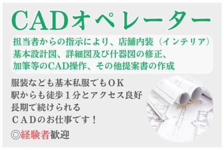 仕事内容 【新着】CADオペレーター募集 - *月収28万円可! *土日祝休みでプライベート充実 *週4日勤務、時短も相談OK - 街でよく見るテナントや飲食店、 オフィスデザインなど 魅力的な内装デザインを数多く扱う職場で 設計補助業務をお願いします。 【具体的には…】 ・店舗内装(インテリア)の作図、修正、 加筆業務(基本設計、詳細、什器) ・提案資料の作成 ・その他、各協議 ・納まりや共有部の取り合いなどの打合せ等 丁寧なサポートがあるので 安心して働けます。 あなたがお持ちのスキルを更に ステップアップさせてみませんか?