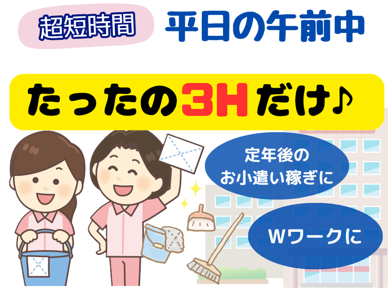 仕事内容 ー 福岡市城南区七隈にある 地方銀行内のお掃除をお任せします。 ー カンタンな作業だから もちろん未経験の方も大丈夫! 重たい機械や使い方の 難しい道具、ありません。 モップやほうきなど、 おなじみのものばかり。 ご家庭の掃除と同じ感覚で 始められます。 * ブランク明けの主婦さんや、 学生、シニアまで様々な年齢、 バックボーンの方々が活躍中。 家庭の事情などによる突発的な 早退やお休みにも対応します。 月に1度は有給を使用するよう 推進しているので 気兼ねなくお休みを取得できます。