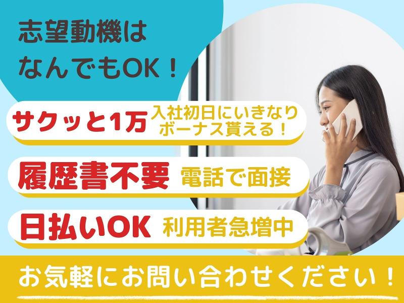アピールポイント: /\/\/\/\/\/\/\/\/\ 入社時の特別支給「サクッと1万」開始 \/\/\/\/\/\/\/\/\/ 入社初日に「入社特典」をゲットしよう! 配属されたその場で「現金1万円!」 気になったらお気軽にお問い合わせください! 弊社スタッフも50名が活躍中! 働きやすいと好評の職場です! * 効率よく稼げる夜勤 * 残業・深夜は高時給1650円 * 未経験OK!カンタン作業のみ * 駅チカ徒歩8分 * 空調完備の快適職場 * 作業服貸与 * バイク・自転車通勤OK * 交通費規定支給 <日払い・週払い利用OK> \まるで毎日が給料日/ \\利用者急増中// \アプリで簡単申請/ お気軽にご相談くださいね!