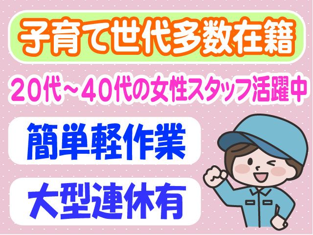 人気の日勤/長期/高時給/ 小さいお子様がいる方も多数在籍中! 部品の仕分け・選別作業スタッフ募集!