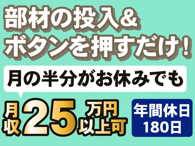 【部品を機械にセットしボタンを押すだけ】単純作業/残業なし/月半分が休み/月収25万円/髪色自由
