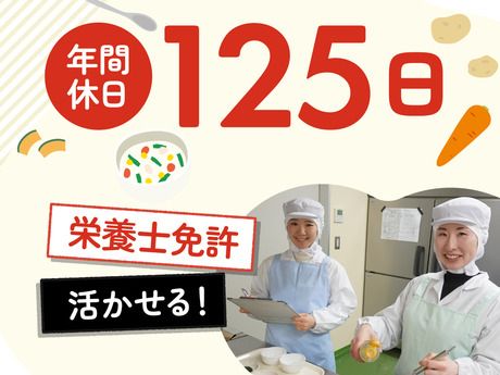 年休125日・残業なし!産休・育休実績有(栄養士免許必須)