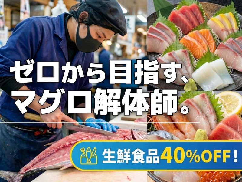 仕事内容 ―――――――――――――――** イチオシ!5つの魅力キーワード ―――――――――――――――― # 未経験から魚捌きをマスターへ! # 生鮮食品が…社割で40%OFF! # マグロ解体ショーへの挑戦も◎ # 週2日・1日3h~勤務OK # 魚が捌けると時給UPの好機! - / 技術を学び、食費も浮かす。 一石二鳥な3つのポイント! \ 【-POINT.01】 未経験も、3ヶ月目で包丁デビュー!  ̄ ̄ ̄ ̄ ̄ ̄ ̄ ̄ ̄ ̄ ̄ ̄ ̄ ̄ ̄ ̄ ̄ ̄ まずは、店舗業務からスタートし 慣れてきた3ヶ月目頃から 店長がマンツーマンで調理指導! 包丁の持ち方やアジの三枚おろしなど 基礎から確実に身につけましょう。 道具は全てお貸しします! 【-POINT.02】 従業員割引で、絶品な魚も40%OFF!  ̄ ̄ ̄ ̄ ̄ ̄ ̄ ̄ ̄ ̄ ̄ ̄ ̄ ̄ ̄ ̄ ̄ ̄ 学生・フリーターさんの強い味方。 新鮮な魚や美味しいお惣菜・お弁当が 社割で40%OFFになるんです! 自分の食費を浮かせたり、 家族や友人へのお土産にしたり、 使い方は自由自在です◎ 【-POINT.03】 憧れの、マグロ解体ショーの主役に。  ̄ ̄ ̄ ̄ ̄ ̄ ̄ ̄ ̄ ̄ ̄ ̄ ̄ ̄ ̄ ̄ ̄ ̄ 意欲次第で、あの大迫力な 『マグロ解体ショー』にも挑戦可能! 大勢の前で技を披露する高揚感は格別です。 ここでの経験は、 きっと一生話せる特技になりますよ! - 【仕事内容】 鮮魚店での商品(お弁当・お惣菜等)の調理、販売など 【具体的には…】 ■レジ会計・接客対応 ■商品の陳列・品出し ■食材の下処理・準備 ■簡単な調理補助 ■魚の捌き・加工(研修後) ■調理場・フロア清掃 など - 「かっこいいから」 「魚が好き」 「食費を浮かせたい」など 応募のきっかけは何でもOK! sakana baccaで、美味しくて楽しい 新しいバイトライフを始めませんか? ~~~~ 〈変更の範囲〉雇用者の指定する業務 \某有名テレビ番組にて当社の取り組みが取り上げられました!/ 詳細は下記リンクからご確認ください! https://foodison.jp/news/202505gaia2
