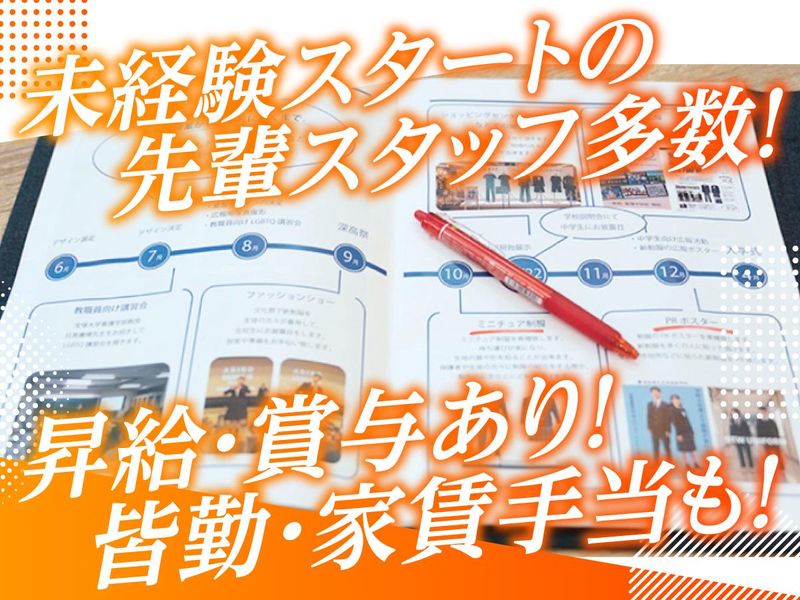 求めている人材 ✅未経験歓迎 ✅無資格OK ✅学歴不問 \異業種からの転職も大歓迎!/ 接客や販売など、異業種で培った コミュニケーションスキルも活かせます! 「経験ゼロでも営業職をしてみたい」 という気持ちを応援します◎ \こんな方は大歓迎です!/ ・人と話すことが好き ・困っている人の力になりたい ・制服が好き/興味がある ・営業に興味があるけど不安… ・ノルマに追われず営業がしたい ・企画や服のデザインに興味がある などなど 別部署では企画やデザイン制作を行っており、職場で色んな刺激を感じられます!