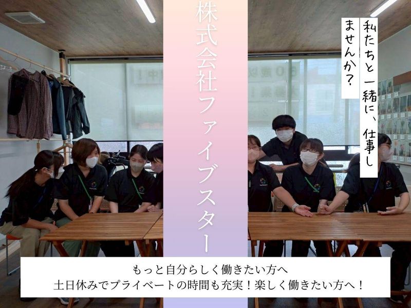 仕事内容 ご覧いただきありがとうございます!✨ 「介護の仕事に興味ある。でも介護の専門性が不安…」 「人と話すのが好き」 「体を動かす仕事がしたい」 そんな気持ちがあれば、未経験者でも十分に活躍できます。 また、「介護は好きだけど夜勤や重介助がない職場で、長く働きたい」 そんな想いをお持ちの方に、ぜひ知っていただきたい職場です! 私たち株式会社ファイブスターは、神奈川県相模原市を中心に リハビリ特化型デイサービスを運営しています。 当施設は、リハビリ・運動に特化したデイサービスです。 一般的なデイサービスのような「入浴・食事・排泄介助」はなく、 ご利用者様が元気に体を動かす時間をサポートすることが主なお仕事です。 大切にしているのはご利用者様に「あきらめない心を持っていただく事」 ご利用者様が「できること」を増やし、 もう一度自分らしい生活を取り戻すためのサポートを行っています。 介護業界が初めての方も、ブランクのある方も大歓迎。 一人ひとりのペースに合わせた研修があるため、 「ついていけるか不安…」という心配は不要です。 経験者の方は、これまでのスキルをしっかり評価・活かせる環境をご用意しています。 ◆アピールポイント◆  ̄ ̄ ̄ ̄ ̄ ̄ ̄ ̄ ̄ ̄ ✅ 入浴・食事介助は一切なし ✅ 夜勤なし・土曜、日曜定休で安定 ✅ 定員30名の半日型デイ ✅ 週3日・1日4時間〜OK ✅ PT・OT等の専門職が在籍 ✅ 未経験・無資格の方のご応募大歓迎 ✅ 資格有・経験有は優遇 ✅ 髪色・ネイル自由で自分らしく ◆施設について◆  ̄ ̄ ̄ ̄ ̄ ̄ ̄ ̄ 施設名 :リハビリデイサービスオリオン 事業開始 :2020年4月1日 営業時間 :①9:00~12:10 ②13:30~16:40 休日 :土、日、年末年始(12/30~1/3) スタッフ数:18名 └ 管理者 └ 生活相談員 └ 看護職員2名 └ 理学療法士2名、作業療法士2名 └ 介護福祉士を含む介護職員10名 利用者定員:30名 ────────────────────── 【仕事内容】 リハビリデイサービスオリオンにて利用者様の 「また旅行に行きたい」「元気になりたい」 を支える介護・リハビリ補助業務です。 <主な業務内容> ① リハビリ補助・見守り  ̄ ̄ ̄ ̄ ̄ ̄ ̄ ̄ ̄ ̄ ̄ 理学療法士が作成したプログラムに基づき、マシントレーニングの補助や歩行訓練の見守りを行います。 利用者様と一緒に目標を共有し、「できた!」を喜び合える瞬間が魅力です。 ────────────────────── 【アピールポイント】 ✨介護の「常識」が変わる環境です✨ 「介護=きつい」という イメージをお持ちではありませんか? 当社のデイサービスは全く違います! 理由①:身体的負担が少ない  ̄ ̄ ̄ ̄ ̄ ̄ ̄ ̄ ̄ ̄ ̄ ̄ ̄ 入浴介助や食事介助がない「半日型・リハビリ特化型」です。 利用者様は「元気になりたい」という意欲的な方が多く、重度の身体介助よりも「声かけ」や「見守り」が中心です。 理由②:夜勤なし・日曜休み  ̄ ̄ ̄ ̄ ̄ ̄ ̄ ̄ ̄ ̄ ̄ ̄ ̄ 生活リズムを崩さずに働けます。 ご家族との時間やプライベートも大切にできる環境です。 理由③:専門職としてのスキルアップ  ̄ ̄ ̄ ̄ ̄ ̄ ̄ ̄ ̄ ̄ ̄ ̄ ̄ ̄ ̄ ̄ ̄ 理学療法士が常にそばにいるため、 「なぜこの動きが必要なのか」 「どうすれば可動域が広がるか」など、医学的な根拠に基づいた介護知識が自然と身につきます。 理由④:「ありがとう」の重みが違う  ̄ ̄ ̄ ̄ ̄ ̄ ̄ ̄ ̄ ̄ ̄ ̄ ̄ ̄ ̄ ̄ ̄ ただお世話をするだけでなく、 「また歩けるようになった」 「旅行に行けた」という 具体的な成果を共有できるため、感謝の言葉にも深みがあります。 ────────────────── 【会社の特徴】 ・理念:「星のように光り、尖った人生を、いつまでも」 ・デイサービスを中心に、リハビリ・認知症ケア・音楽療法など多彩なサービスを展開 ・介護保険制度に依存せず、地域のつながりを活かすケアを重視 ・施設数:6施設 ・カフェ:1店舗運営 ・従業員数:約70名