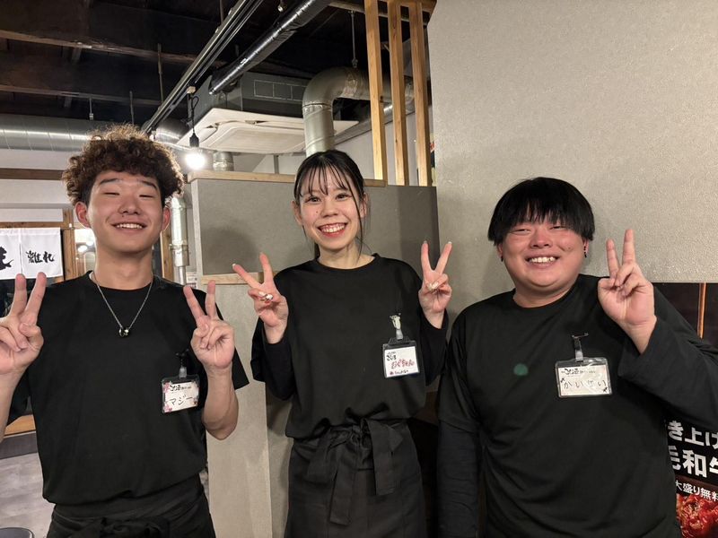 仕事内容 。・゜☆・゜・ 。・゜☆・゜・ 。・゜ 1日4時間~OK★ 髪型・髪色・ネイル・ピアス自由♪ オシャレも楽しみながら 一緒に働きましょう! 。・゜☆・゜・ 。・゜☆・゜・ 。・゜ SNSにて話題沸騰中✨ ランチ限定「黒毛和牛ハンバーグ」が 人気のやきにく屋さんです♪ ー ホール・キッチン業務をお任せします! ー ✅ホールの仕事内容 ・お客様のご案内 ・オーダー取り ・お料理やドリンクの配膳 ・お会計 など ー ✅キッチンの仕事内容 ・盛り付け ・仕込みなどの調理補助 ・洗い物 など ー ✨ 丁寧な研修で安心して長く働ける! 接客・調理の経験がなくても大丈夫です。 先輩スタッフが丁寧にサポートしますので、 安心してお仕事をスタートできます♪ ー 当店では“働きやすい雰囲気づくり”を大切にしています。 店内は明るく、スタッフ同士で声を掛け合いながら、 気持ちよくお客様をお迎えしています。 「いらっしゃいませ!」と元気に挨拶したり、 注文が入ったらみんなで声を掛け合ったりと、 自然と笑顔が増える、あたたかい職場です。