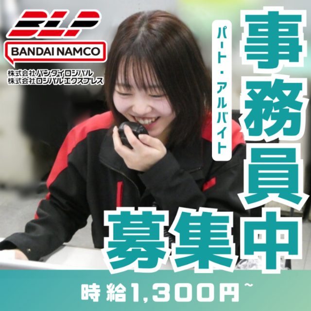 仕事情報 ● 仕事内容 バンダイナムコグループの物流会社で「営業事務」のパート・アルバイトを募集中!グループ企業への問い合わせ対応など、窓口対応を主にお任せします。分からない点は先輩がレクチャーするので安心!幅広い仕事にチャレンジするポジティブさを歓迎します。福利厚生も充実◎★一般事務 同時募集中★ 全従業員にプチボーナス! ロジパルでは、パートナー社員(パート・アルバイト)にも夏&冬の年2回、プチボーナス(年度末評価により最大2万円)を支給!“プチ”という名称ではありますが「もらえると、やっぱりうれしい」と笑顔になるスタッフ多数!頑張って働くモチベーションの一つとなっています。 明るく楽しい環境の職場 「玩具」という夢のあるアイテムの輸送に携わる会社の特性や安定感から、職場は先輩も後輩も優しい人が多数。和気あいあいとした雰囲気です。会社になじんでいくにつれて、さらに楽しく働くことができるでしょう。 残業代は1分単位で支給 運転にまつわる業務では、交通渋滞などの予期せぬことが起こって残業が発生してしまう場合があります。ロジパルでは、残業代は1分単位で全額支給。いわゆる“サービス残業”はありません。携わった分の労働はきちんと金銭で還元します。ドライバーもほかの職種の方々も、安心して働けます。 “楽しさ”を世界にも配送 玩具・アミューズメントの有名企業として高い知名度を誇るバンダイナムコグループ。そのグループ内の物流企業は、私たちバンダイロジパルとロジパルエクスプレスだけです。PAL (仲間)と共に、日本のみならず世界へ 『夢・遊び・感動』 を配送。ワールドワイドに笑顔を生み出し続けています。