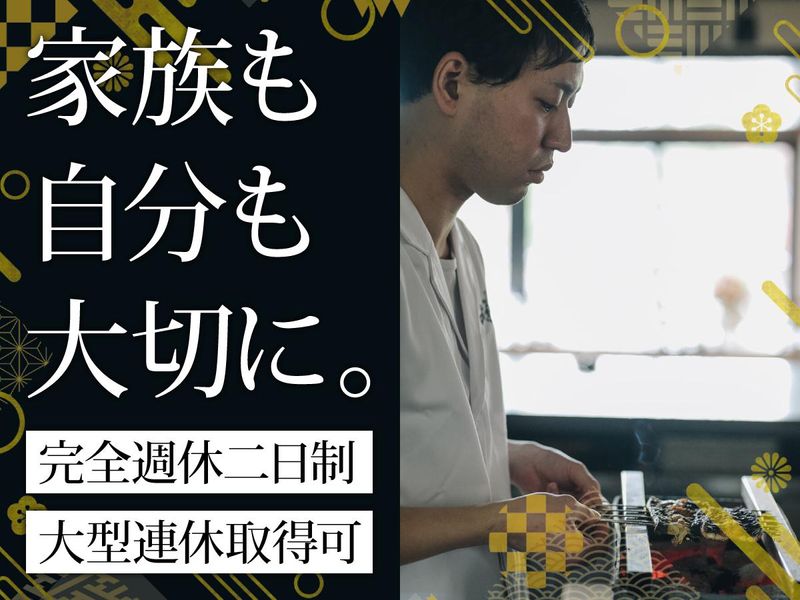 求めている人材 ★和食調理経験者歓迎! ★30代・40代活躍中!ブランクOK! ★キャリアアップに意欲的な方大歓迎! 「一流の料理でお客様を魅了したい」 そんなお客様の喜びのため スキルアップや新しい挑戦に 前向きに取り組める方を大歓迎しています。 和食調理の経験を活かし、 一流のうなぎ職人として 新しいキャリアと充実したライフワークを 手にしてみませんか? >>うなぎ屋経験者は優遇あり! 正社員の調理スタッフとして うなぎ店で経験がある方は優遇いたします。 ▼こんな方もぜひ▼ ・一流の場所で一流の技術を学びたい ・チームワークを大事に働きたい ・1つの場所で腰を据えて働きたい ・ワークライフバランス充実させたい ・調理師スキルを活かしたい ・和食店でのホール・キッチンスタッフの経験を活かしたい ・ゆくゆくは独立したい また、和食料理の調理経験者募集ですが、 「一からうなぎ職人に目指したい」 という意欲ある方なら未経験者歓迎! 飲食店のホールスタッフの経験だけ、 アルバイト・パートとして 調理補助や洗い場しか担当したことがない。 そんな方もお気軽にご相談下さい。