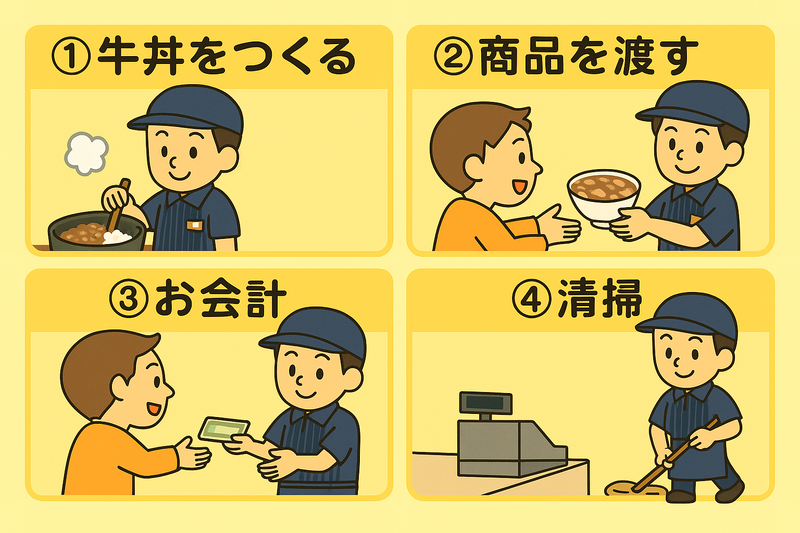 吉野家のホールキッチンスタッフ