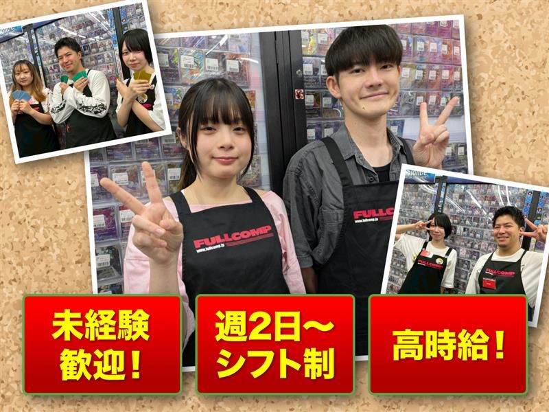 仕事内容 □■───────────────── ✨未経験・バイトデビューも大歓迎! ✨髪型・髪色自由でオシャレも楽しめる! ✨週2日~で私生活との両立もしやすい ─────────────────■□ ⭐【フルコンプってこんなお店】  ̄ ̄ ̄ ̄ ̄ ̄ ̄ ̄ ̄ ̄ ̄ ̄ ̄ ̄ ̄ ̄ ̄ ̄ ̄ ̄ 「カードゲームが大好き!」 「人と話す仕事に挑戦してみたい!」 ――そんな気持ちを大切にしています。 スタッフの中には、 「アニメは好きだけどカードは未経験」 「小学生の頃以来カードに触れていない」 という人も多数。 トレカ初心者から始めた先輩も多く、 『好き』や『気になる』をきっかけに 安心して働ける環境です! ⭐【お任せするお仕事】  ̄ ̄ ̄ ̄ ̄ ̄ ̄ ̄ ̄ ̄ ̄ ̄ ̄ ̄ ̄ ̄ ̄ ̄ ̄ ̄ ◎レジ対応 ◎商品の販売・買取受付 ◎SNSへの投稿や運用 ◎品出し・棚の整理整頓 ◎商品ポップ作り ◎オリジナルパックの作成 ◎店内での大会サポート まずはカンタンな接客からスタート! 慣れてきたら少しずつ幅を広げていきましょう。 「いきなり難しいことを任されるかも…」 なんて心配は必要ありません! 店長や先輩が1ヶ月かけて研修するので安心です♪ 「カードが好き」 「お店づくりに関わりたい」 そんな気持ちを持っている方なら大歓迎! 一緒に当店でを盛り上げていきましょう!
