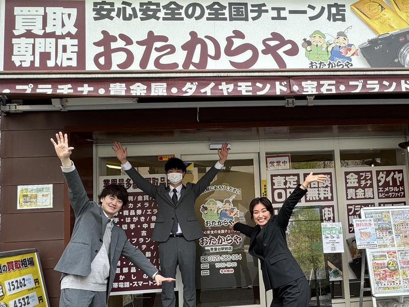 仕事内容 【今回の募集について】 全国展開の買取業界シェアNO1 おたからや ! 今回は 新店舗続々オープンの為、東京、神奈川県、宮城県、岩手県のエリアでオープニングスタッフ大募集! スタートは皆一緒!新しい店舗でイチから店舗を立ち上げてみませんか⁈ おたからやは知名度・安定感抜群!!だけでなく・・・業界最大手なのでお客様満足度NO1!! 自社独自の販売ルートを確立、自社独自の営業スタイルで高収益を実現!働きやすさも満点! 飛び込み営業やノルマなど一切なしの完全反響営業! 今回お任せするのは貴金属やブランド品の査定・買取スタッフです。 オープニングスタッフとして新たなスタートを切りたい方、大歓迎です。 未経験でも全く問題なし! 分かりやすい充実の研修制度で働きながらブランドや貴金属や時計や骨とう品など・・・様々な知識が身に付きますよ! 【求人のアピールポイント】 ■ 100%反響営業で飛び込みなし! ■ 経験者は優遇、未経験も安心のサポート体制。 ■ 残業禁止を徹底! ■ 年収1000万円以上多数!! 【具体的な仕事内容】 ■ 来店されたお客様の対応 (1日5~6件程) ■ 買取のご案内/ご成約のための商談/査定 ■ 数値報告 ■ 店内美化 ■ 買い取った商品の発送など 【一日の仕事の流れ(一例)】 10:00⦆開店準備・開店・お客様対応 13:00⦆お昼休憩 14:00⦆お客様対応・事務作業 17:00⦆接客の合間で売り上げ分析 19:00⦆閉店→残業なしで退社! 【こんな方にオススメ!】 ■ コミュニケーション能力の高い方 当社では営業職や販売職の経験者が多く在籍しております。(アパレル業、広告業、飲食業、車ディーラー、不動産業、携帯ショップ、教員 など) おしゃべり好き、聞き上手な方には最適です! ■ 実力がしっかり評価される環境で成長したい方 当社は年齢や経験にとらわれない絶対評価!買い取り実績に応じて、インセンティブもガッツリ支給◎ ■ キャリアアップを目指している方 今後も続々と出店予定がある為、新店舗の店長や将来の幹部候補も育成していきたいと思っています。 管理職として活躍したい方、大歓迎です! 年功序列は一切御座いません!アナタの実力次第でマネージャー・エリアマネージャーに抜擢します! 【たくさんのご応募お待ちしております!】 ブランド品、貴金属に詳しくなくても問題無し! 査定方法などに関しては研修でしっかりと教えます。 まずはお客様と楽しく会話してくださいね。 お買取りさせていただく品物をいつ頃、どこで購入されたのか等の基本的なヒアリング、お客様との世間話しからお願いします! 金額や買取の可否については店長と相談しながら決めますので、ご安心くださいね。 今もなお過去最高の売上更新中! リユース業は3兆円規模と言われております。 今最も勢いがある業界で長期で安定して働くことが出来ます! 買取業務はただの査定ではありません。 お客様との対話を通じて、思い出やストーリーを聞き出し、しっかりとした信頼関係を築く仕事です。 お気軽にご応募くださいね。 【先輩社員インタビュー】 入社2年目20代店長 Oさん 「僕は約2年前に求人広告の高収入で社宅無料に惹かれて入社しました。それまでは飲食店のアルバイトしか働いた事が無く営業はもちろんスーツを着る仕事も未経験でした。ブランド品など知識も無かったのですが研修で丁寧に教えて頂き、先ずはお客様と会話を楽しめれば決して難しい仕事ではありません。今では月売上2000万円の店舗を任せて貰っておりアルバイト時代とは考えられないお給料を頂いてります。この仕事に出会えて本当に良かったです。」 入社8カ月目20代店長 Hさん 「入社後しばらくは関東の店舗で経験を積み、東北の新店舗がオープンするタイミングで店長として立候補をして東北の店舗の立ち上げに尽力しました。努力の甲斐もありオープン初月から目標数字をたたき出し続けておりインセンティブも満足の金額を頂いております。この実績をもとにキャリアアップを目指し次はエリアマネージャーに立候補します。僕のような20代前半の未経験者でもここまで稼げる環境に感謝です!」 ※関東での研修有(期間は能力に準ずる)
