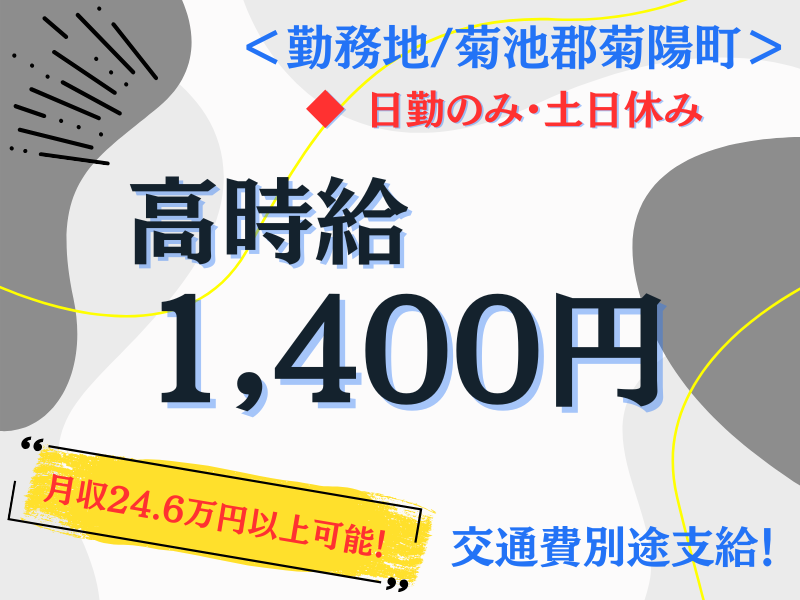 求める人材: 未経験OK! *20代~50代が多数活躍中! *フリーター歓迎 *菊池郡菊陽町でお仕事をお探しの方 U・Iターン歓迎! 【こんな方にオススメ】 ・短期のお仕事をお探しの方 ・軽作業のお仕事をお探しの方 ・もくもく作業が得意、好きな方 ・工場・倉庫での勤務経験のある方