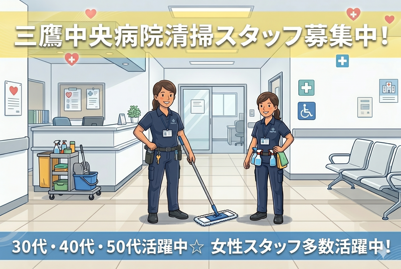 仕事内容 ================= 特別な知識や経験・スキルがいらない 未経験でも気軽にスタートできる 清掃のお仕事です。 夕方までの4h、週4日の勤務です。 年齢を問わずブランクがある方も 安心して働けるシフトになります。 ================= 病院内の清掃を行う アルバイト・パート募集! 午後から夕方までの4時間だけなので 働きやすさは抜群です◎ 未経験・経験者共に大歓迎です。 女性スタッフ活躍中! 幅広い年代の方が活躍しています。 <具体的なお仕事内容> ✅床の拭き掃除や掃き掃除 ✅洗濯業務 ✅トイレ掃除 ✅ゴミ回収など 勤務地は三鷹市内にある三鷹中央病院です。 普段から清潔な病院ですので 清掃のお仕事も大変な事はありません。 清掃未経験の方も大歓迎しています。