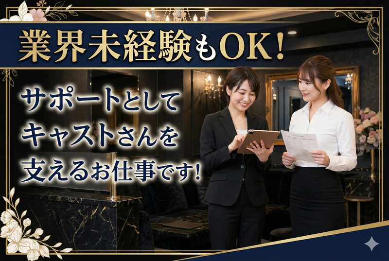 キャスト業務や着席しての接客ナシ!未経験OKのサポート業務◎