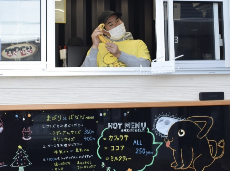 バナナジュースの移動販売スタッフ