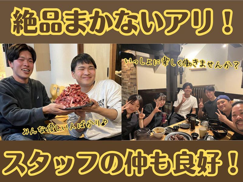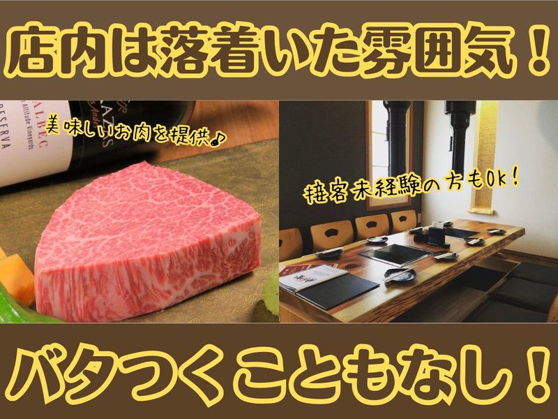 仕事内容 \✨炭火焼肉絆繁★スタッフ増員募集✨/ レジ業務なしで、接客・配膳などシンプル♪  ̄ ̄V ̄ ̄ ̄ ̄ ̄ ̄ ̄ ̄ ̄ ̄ ̄ ̄ ̄ ̄ ̄ ̄ ̄ ▶西鉄久留米駅から徒歩5分の好立地❗ ▶週1日・1日4時間~OK❗ ▶学業との両立もラクラク❗ ▶髪色・髪型自由で自分らしく働けます❗ 【仕事内容】 焼肉店のホールスタッフとして、 下記の業務を行っていただきます。 (具体的には…) ●お客様を席へご案内 ●料理やドリンクの提供 ●テーブルの片付け ●店内清掃 ⏩まずは笑顔で明るい対応ができればOK! 仕事内容は研修を通して徐々に慣れていってください◎ ⏩レジ(金銭のやり取り)業務がありません◎ 「お金のミスが不安…」そんな方でも、 安心してスタートしていただけます! ||◤✨ココが魅力ポイント✨◢||  ̄ ̄ ̄ ̄ ̄ ̄ ̄ ̄ ̄ ̄ ̄ ̄ ̄ ̄ ̄ ̄ ➰シフトの融通抜群! 1日4時間~・週1日~勤務OK◎ 学業との両立もラクラクです! ➰絶品まかないアリ! 何が食べれるかはその日のお楽しみ♪ もしかしたら、和牛が食べれるかも?! まかないはスタッフにも大好評◎ ➰駅チカで便利! 西鉄久留米駅から徒歩5分で、 雨の日でも通いやすい! もちろん、車・バイク通勤もOK◎ ||◤✨炭火焼肉絆繁のご紹介✨◢||  ̄ ̄ ̄ ̄ ̄ ̄ ̄ ̄ ̄ ̄ ̄ ̄ ̄ ̄ ̄ ̄ ̄ 西鉄久留米駅近くにある「炭火焼肉 絆繁」は、 鹿児島県産黒毛和牛を中心に、 A4ランク以上の上質なお肉を提供する炭火焼肉店です。 備長炭で焼き上げることで旨みを引き出し、 とろけるような味わいを楽しめます。 希少部位や特選メニューも揃い、 落ち着いた空間でデートや家族利用、 宴会まで幅広くご利用いただけます。 厳選和牛と心地よい空間で、 特別な時間を過ごせる焼肉店です。
