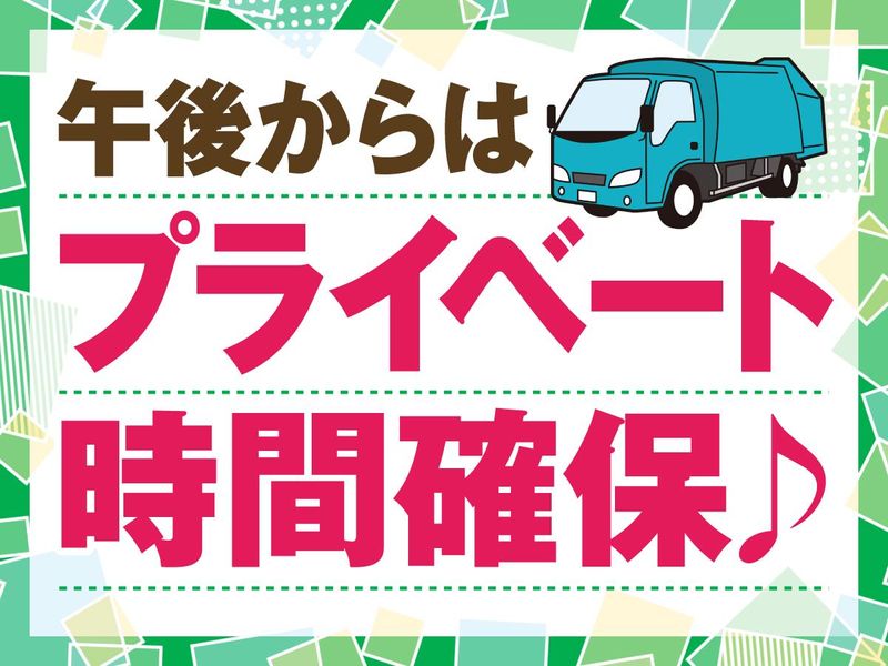 求めている人材 ※中型免許もしくは旧普通免許(平成19年6月1日までに普通免許を取得)必須 【歓迎】 ■パッカー車やコンテナ車の乗務未経験OK ■3t、4tドライバー・トラック運転手などの経験者歓迎 ■運送・配送業など異業種からの転職歓迎 ■大型ドライバー経験者歓迎 ■ブランクOK ■中高年活躍中 「子どもの帰宅時間には家に居たい」 「午後からのプライベート時間が欲しい」方にはピッタリです。 ★経験よりも人物重視の採用になります。 「安定した業界で腰を据えて働きたい」方 「地域密着の仕事をしたい」方など長期で活躍希望の方大歓迎です。