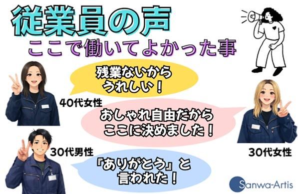 職場環境 ◆髪色髪型自由・ネイルOK (派手でなければ可) ◆20~50代スタッフ活躍中 ◆無料駐車場あり
