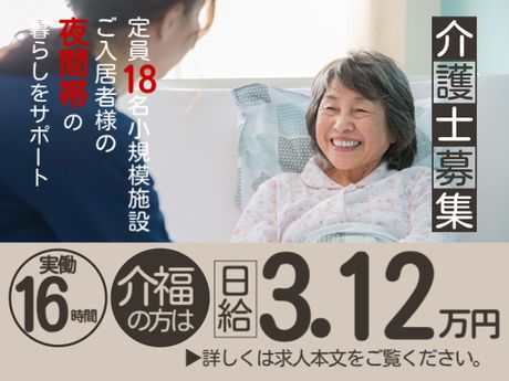 ★急募★\日給3万円超え/小規模施設!人気のグループホーム|ユニット固定|週2回~相談OK|車通勤可