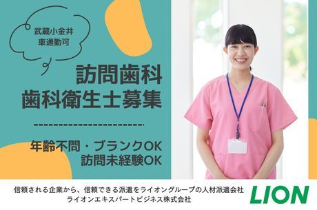 仕事内容 【お仕事の内容】 【訪問歯科での歯科衛生士業務全般】 施設入所者への口腔ケア・ブラッシング指導 診療時のドクター補助(診療介助) 診療内容・ケア内容などの業務記録 担当施設の訪問スケジュール管理・患者情報管理 診療機材の準備、後片付け、機材の清掃・管理 設備:デジタルレントゲン、ポータブルユニット、嚥下内視鏡完備 【1日のスケジュール例】 09:00 ミーティング 訪問先や診療内容についてスタッフで情報共有 09:15 医院出発 09:40 午前の施設訪問 診療(施設内各室をまわり、ドクター診療補助、単独での口腔ケアなど) 12:00 休憩(医院での昼食 、午後施設の近辺で食事 ケースバイケース) 13:30 午後の施設訪問 診療(施設内各室をまわり、ドクター診療補助、単独での口腔ケアなど) 16:00-16:30 医院へ帰院 片づけ、業務記録、次の日の準備など 18:00 終業 退社 【お仕事のポイント】 訪問歯科での歯科衛生士業務をお任せします。 主に施設に入所されているご高齢の方を対象に、 口腔ケアやブラッシング指導、診療介助、業務記録などを行っていただきます。 担当する施設のスケジュール管理や、診療に必要な準備・片付けも含めて、 チームで協力しながら進めるスタイルです。 患者様一人ひとりの生活に寄り添いながら、 「食べる・話す・笑う」を支える歯科衛生士として 社会に貢献できるやりがいのあるお仕事です。 今後さらにニーズの高まる訪問歯科の分野で、 スキルを活かしながらキャリアアップを目指せます。 【営業のおすすめポイント】 2025年5月に新規開院した訪問歯科です。 来春には医療法人化を予定しており、安定して長く働ける環境です。 訪問先は施設のみ・午前午後1件ずつで、慌ただしい移動はありません。 土日祝休み・18時定時退社・残業なしで、 家庭やプライベートと両立しやすい職場です。未経験・ブランクOK! ご高齢の方との会話が好きな方や、人と関わることが好きな方なら大歓迎。 自転車・車通勤可、運転できる方は給与優遇あり。 これから需要の高まる訪問歯科で、やりがいのある仕事を始めませんか? 【紹介予定派遣について】 紹介予定派遣とは、派遣社員として一定期間働いた後 (最長6ヶ月)双方の合意があれば派遣先に 直接雇用されることを前提とした派遣形態のことを指します。 実際に働いてみて、派遣先の雰囲気や仕事内容を確認し その上で直接雇用を決めることができます。 ~紹介予定派遣の流れ~ 1.派遣会社に登録・面談 労働者は派遣会社に登録し、スキルや希望条件を伝える。 2.派遣先企業とのマッチング 派遣会社が適性のある派遣先を紹介、 または労働者が希望とする派遣先のマッチングを行う。 3.派遣期間 派遣社員として一定期間(通常3~6ヶ月間)働く 4.直接雇用の判断 派遣期間が終了する際に 就職先と労働者の双方が合意すれば、 直接雇用(正社員/契約社員/パートなど)に移行します。 【ライオングループの専門性を活かして派遣が初めての方も安心してスタートができる!】 ライオン株式会社のグループ会社として、安心・安定した環境をご提供しています。 オーラルケアや衛生管理に強みを持つライオンならではの知見を活かし、 歯科衛生士・歯科技工士の方々に向けた専門性の高い人材派遣・紹介サービスを展開。 臨床だけでなく、企業での活躍を目指す方にも多数の紹介実績があり、 就業前後の丁寧なフォロー体制で、企業と働く人の双方に寄り添います。 オンライン面談やLINEでのサポート体制も整っており、派遣登録から就業まで安心してご相談いただけます。 あなたに合った、質の高い働き方を、ライオングループがしっかりサポートします。