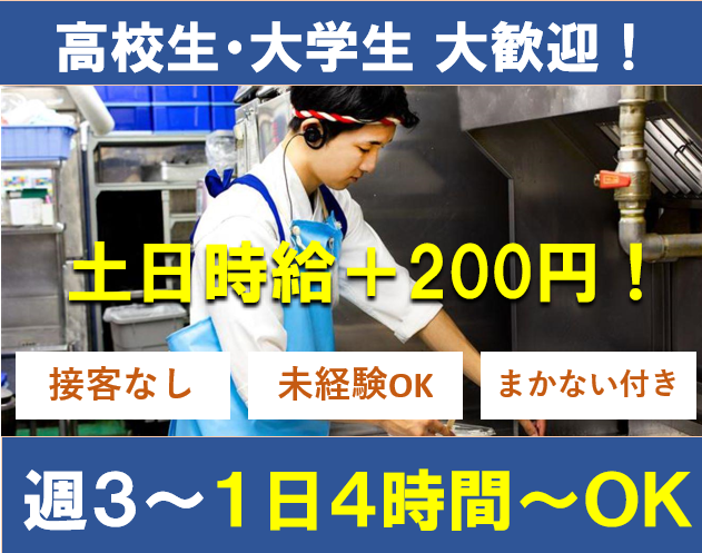 【土日時給+200円】高校生~主婦さんまで活躍!まかない付き