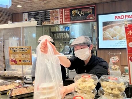 仕事内容 カウンター内での販売・厨房内での製造・簡単な清掃をお任せします。 ◎カウンター内での販売・接客 接客が初めてで不安、という方でもマンツーマンでしっかりサポート! ◎お店内の厨房で調理 ギョーザやシューマイの作り方もイチから丁寧に教えます♪ 製造のお仕事は、一つひとつ手作り。 先輩スタッフが丁寧に教えてくれるので、 本格点心の製造技術が身に付きます♪