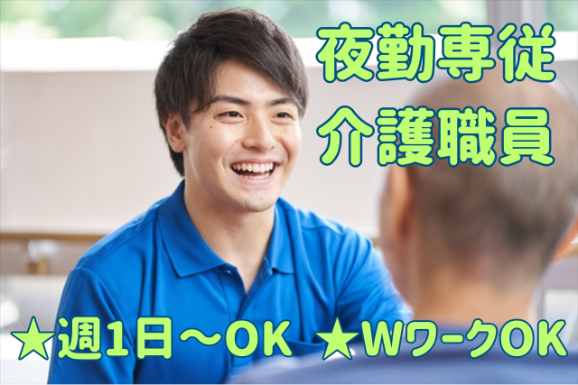 夜勤専従介護スタッフ 週1日~OK WワークOK 初任者研修の資格をお持ちであればOK 入社日応相談