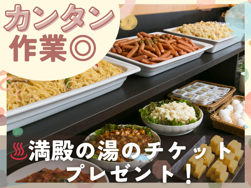 仕事内容 ★ビジネスホテル朝食スタッフ★ ★7:00~9:30までのお仕事★ ★週2日~、平日のみもOK★ ★接客ほとんどなし★ *-* 仕事内容 *-* ・朝食会場にて食材の簡単な盛り付け ・食器の片づけ→食洗機でのお皿洗い ・テーブル清掃等、簡単な作業 ※フロント担当と一緒に作業なので 厨房の中の作業がメイン◎ 調理資格や経験は一 切不問です! *-* 1日の仕事の流れ(例) *-* 7:00 ~ 9:00 出勤後は、使用済み食器の片づけや 食洗機での洗浄作業、 追加料理のご提供など、 朝食対応を中心とした業務を 行っていただきます。 9:00 ~ 9:30 朝食サービスの終了後は、 後片づけや厨房内の清掃、 食材の在庫チェックや管理など、 次の準備に向けた作業をお願いします。 *-* 家事の延長線◎ *-* 料理の盛り付け、お掃除、片付けなど 普段の家事の延長戦のようなお仕事です。 子育てが落ち着いた主婦(夫)さんや、 Wワークの方にもピッタリ◎