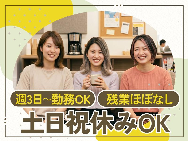 勤務時間詳細 9:00~16:00(実働6時間、休憩1時間) *残業ほぼなし *週3日~勤務OK *シフトは面接時に相談可能