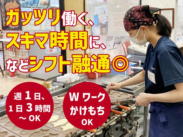 仕事内容 \土日祝は時給アップ✨/ ✅土日祝…時給1190円 ⭐週1日~、1日3時間~OK ⭐バイトデビューもOK◎ ⭐高校生、大学生、主婦(夫)歓迎! 電話でのご応募も歓迎✨  ̄V ̄ ̄ ̄ ̄ ̄ ̄ ̄ ̄ ̄ TEL:0120-003-364 株式会社コムライン/採用担当まで あなたには、 「おめで鯛焼き本舗 イオン三好店」で 調理補助のお仕事をお任せします。 ━━━━━━━━━━ 具体的には… ━━━━━━━━━━ ◆たい焼きの製造 ◆商品の提供 ◆仕込み ◆店内の掃除 など わからないことはスグに質問できるので、 初めての方も安心してスタートできますよ! まずは簡単なことから始めていきましょう! ━━━━━━━━━━ 初めてのバイトも おめで鯛焼き本舗なら安心✨ ━━━━━━━━━━ 年齢不問!資格・経験一切必要なし♪ 大学生・高校生・主婦(夫)さん・ シニアさん・フリーターさんなど、 様々な方が活躍しています。 「経験がないから不安…」 という方もご安心ください! イチから丁寧にフォローしますし、 未経験スタートのスタッフが たくさんいますよ! ━━━━━━━━━━ シフト自由! 融通バッチリです✨ ━━━━━━━━━━ 「平日のみ」「土日のみ」「短時間」 などなど、働き方は気軽に 相談してくださいね♪ テスト・部活・旅行・サークルなどで、 シフトにしばらく入れなくても、 事前に伝えてもらえればOK! あなたのライフスタイルに合わせて シフトを決められますよ。 お試しで3ヶ月の短期も相談OKです。