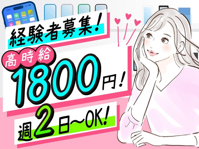 仕事内容 ✼┈┈┈•✼•┈┈┈•✼•┈┈┈•✼•┈┈┈✼ ✨最新機種に触れられるチャンス✨ ★週5日勤務で月収27万円以上可能❗❗ スマートフォンの初期設定のお手伝い❗ ✼┈┈┈•✼•┈┈┈•✼•┈┈┈•✼•┈┈┈✼ ♪/)_/) /)_/) ★経験を活かして高収入! (。・ω・)*・∞・) ★超~高時給1800円✨ ⭐週2日~OK◎プライベートも充実☕ ⭐Wワーク・副業も大歓迎❗ ⭐平日のみ・土日のみもOKです☘ ◤ ̄ ̄ ̄ ̄ ̄ ̄ ̄ ̄ ̄ ̄ ̄ ̄ ̄ ̄ ̄ ̄ ̄◥ 携帯のキャリアショップにて 契約後のスマホのセットアップ! スマホデータ移行経験がある方や ショップ店員の経験がある方にオススメ☘ ◣_________________◢ ▶具体的なお仕事内容は…✨ ✅初期設定 ✅データ移行 ✅操作説明 ✅付属品の案内 など! *実際に働く前にわかりやすい 研修があるので安心です◎ *主婦(夫)さん・学生・フリーターなどが活躍中! ◌◍┈┈┈┈┈┈┈┈┈┈┈┈┈┈┈⿻*.· ╭━━━━━━━━━╮ ✨メリットたくさん✨ ╰━━━━v━━━━╯ ①お友達紹介制度あり⭐ ════════════ お仕事を紹介した方も、された方も お互いに紹介金がもらえる嬉しい制度✨ *紹介者…………1万円☘ *紹介された方…5000円☘ ②稼働分前払い制度あり⭐ ═════════════ 働いた分のお給料は前払い可能! 「今月支払いがピンチ」 「限定商品が欲しい」 「給料日前に家電が壊れた」など 様々なシーンで大活躍です♪ ③昇給あり❗⭐ ════════ 頑張りはしっかり評価! 長く働いているスタッフの モチベーションにもつながっています◎ ④シフト自由❗⭐ ═════════ 週2日~OK!平日のみ・土日のみ 短期・長期・副業・Wワークも、 まずはあなたの希望の働き方を ご相談ください(●'艸'●) ⑤駅チカで通勤ラクラク⭐ ═════════════ 駅から徒歩圏内だから通勤も楽ちん♪ 交通費も支給されるので安心◎