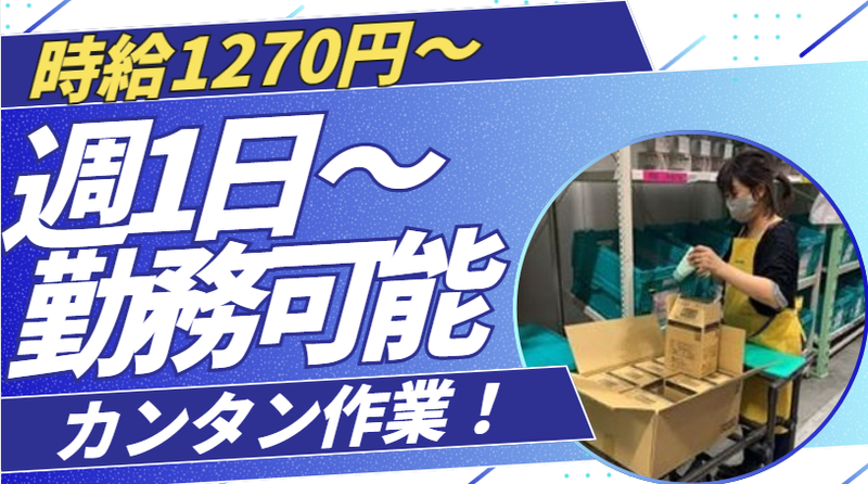 仕事内容 ✅週1日~OK! ✅未経験者大歓迎! ✅人気のコツモクWORK! 倉庫内での簡単な作業をお任せします。 【仕事内容】 ・入荷商品の荷受け ・ソーターへの流し込み ・ケース在庫の管理・ピッキング等々 \ 働きやすさバツグン / 広い作業場なのでそれぞれのポジションでモクモクと作業を行えます! ⭐こんな方におススメ  ̄V ̄ ̄ ̄ ̄ ̄ ̄ ̄ ̄ ̄ ̄ ̄ 現在、男性スタッフを中心にフリーターさんや主婦(夫)さん、学生さんなど幅広い世代が活躍中! コツコツとした作業が得意!1人の作業が好き! なんてスタッフが活躍しています♪ 作業場も広く働きやすさ抜群! それぞれのポジションでモクモク作業することが出来ますよ! ⭐働き方も様々!  ̄V ̄ ̄ ̄ ̄ ̄ ̄ ̄ ̄ 週1日~、1日3時間~勤務OK! 短時間の隙間時間で勤務可能なので様々な方が活躍中! <先輩たちの働き方> 〇フルタイム勤務の方 週5日×10:00~19:00 〇Wワーカーさん 週3日×7:00~16:00 〇休みの日勤務の学生さん 週2日×13:00~21:00 あなたの働き方に合わせて働ける環境です! ✧❇✿✧❇✿✧❇✿✧❇✿✧❇✿✧❇✿✧ 感染症対策もばっちり! 安全で職場で安定した収入をGET★ 医薬品や日用品を取り扱っているので 事務所内や倉庫内の感染対策は 徹底しています。 安全に働きたいな…とお考えの方には 安心ですね♪ ✧❇✿✧❇✿✧❇✿✧❇✿✧❇✿✧❇✿✧