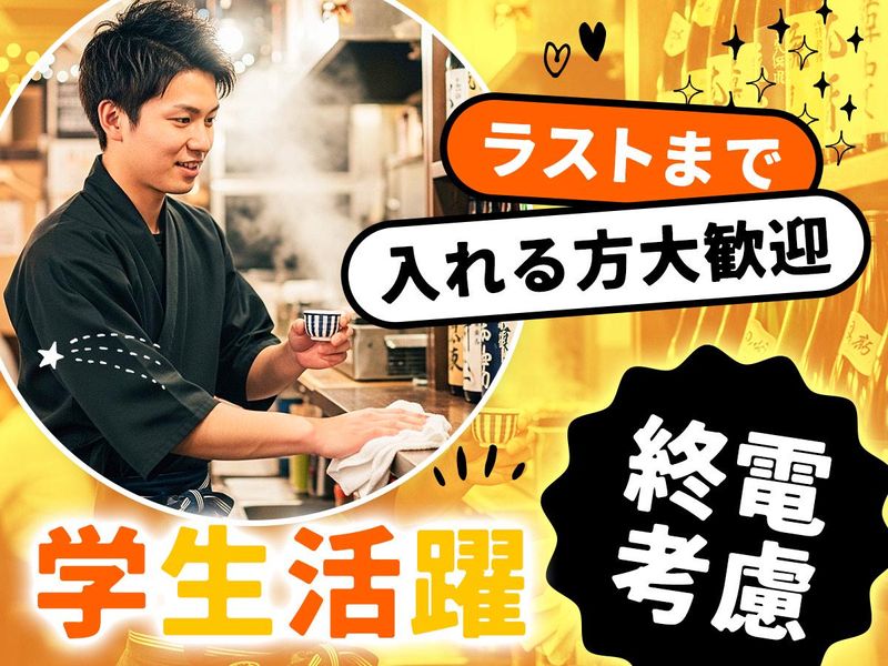仕事内容 「居酒屋バイトは忙しくて大変そう…」 そう思っている方に必見!! 当店は全席「完全個室」の落ち着いたお店。 バタバタと走り回る必要はありません! 優しい先輩たちが1から丁寧にお教えするので、 1ヶ月もあれば誰でもプロになれますよ♪ ✅ 髪色・ネイル・ピアス自由◎ ✅ 駅から徒歩1分♪ ✅ 1週間ごとにLINEでシフト提出◎ ✅ 週1日~、1日3時間~OK! ╭━━━━━╮ ✨お仕事内容✨ ╰━━v━━╯ 【ホール業務】 *ご案内 *オーダー *お料理運び *お会計 今年5月から注文はお客様がスマホで行う 「モバイルオーダー制」なので、 注文を聞き間違える心配もナシ♪ あなたにお任せするのは、 笑顔でお料理を運び、 空いたお皿を下げるシンプルな業務がメインです。 【キッチン業務】 *調理 ┗慣れてきたら補助から少しずつ♪ *盛り付け *皿洗い *仕込み 近隣の大学生や高校生さんが多く、 職場はサークルのような明るい雰囲気♪ 学校の延長のような感覚で、楽しく働けます◎ ╭━━━━━━━╮ ✨働くメリット✨ ╰━━━v━━━╯ ①お洒落へのこだわり、全部OK!  ̄ ̄V ̄ ̄ ̄ ̄ ̄ ̄ ̄ ̄ ̄ ̄ ̄ ̄ ̄ ネイルも髪色もピアスも自由。 「バイトのために髪を暗くする…」 なんて必要はありません。 自分のお気に入りのスタイルのまま、 個性を活かして働けます。 ➁シフトは「超」自由!LINEで1週間ごと  ̄ ̄V ̄ ̄ ̄ ̄ ̄ ̄ ̄ ̄ ̄ ̄ ̄ ̄ ̄ ̄ ̄ ̄ 「来週はテストだから少なめ」 「再来週は旅行に行きたいからガッツリ」など、 1週間ごとにLINEで調整可能。 学業やプライベートを最優先にできる環境です。 ③豪華!無料の「絶品まかない」  ̄ ̄V ̄ ̄ ̄ ̄ ̄ ̄ ̄ ̄ ̄ ̄ ̄ ̄ 食べログでも高評価のメニューが、 スタッフなら無料で食べられます! 「食費を浮かせたい」 「一人暮らしで野菜不足…」 という学生さんに大好評です。