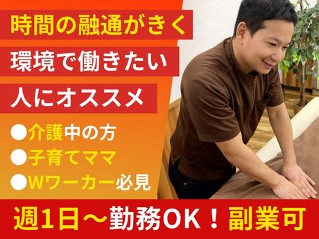 仕事内容 ▼▼▼仕事内容▼▼▼ ■全身ほぐし施術(ボディケア) ・60分以上のコースを中心としたオールハンド施術 ・ストレッチや骨盤矯正等を除いた手技 ・集客は会社で行うので、営業トーク不要! ■雑務 ・受付業務 ・タオル洗濯 ・電話応対 ・清掃 など ※空いている人が行うスタイル ▼経験者はスグに働ける環境  ̄ ̄ ̄ ̄ ̄ ̄ ̄ ̄ ̄ ̄ ̄ ̄ ̄ ̄ ■実技チェックによる即日判断 経験者の場合はマネージャーが直接施術を受け、技術レベルを確認します。一定のスキルがあると判断されれば、研修なしでの店舗デビューも可能です。技術に不安がある方は、お気軽にご相談ください! ■手技の自由度が高い ストレッチや骨盤矯正など一部の禁止事項(医療行為に抵触しうるもの)を除き、これまで培ってきた自身の手技をそのまま活かして施術を行うことができます! ■無給研修の免除 未経験者の場合はプロ講師による参加必須の研修がありますが、経験者はスキルに応じてこれらが免除!高単価(最高歩合)からのスタートも可能です♪ ■ナレッジ共有の文化 形式的な研修ではありませんが、施術後にスタッフ同士で「あのお客様にはこうアプローチした」といった技術的な相談やアドバイスを気軽に行える環境があります! ▼▼▼施術に専念できる▼▼▼ ■「集客業務」なし ・チラシ配り、呼び込み、SNS更新などの集客活動は一切不要 ■「事務作業」なし ・受付・会計業務をシステム化 ・手書きカルテ作成がなく、居残りも残業なし ■「管理業務・教育」の負担なし ・後輩指導や売上管理の責任に縛られません ▼▼▼職場環境▼▼▼ ■指名制度でお客様に選ばれるやりがいUP! ■20代、30代、40代、50代の男性・女性活躍中! ■給与から雑費を引くことは一切なし! 稼いだ分をしっかり還元します。 ■なにもやることがなければ、バックヤードで自由に過ごせる ・資格の勉強 ・読書 ・動画サイトでドラマを見る ・ゲームをする などなどOK♪ 効率的に働いて自分の時間も作れちゃう仕事です! ▼▼▼先輩スタッフの声▼▼▼ ■Nさん(50代/2024年入社) 名前で呼び合う、温かな職場  ̄ ̄ ̄ ̄ ̄ ̄ ̄ ̄ ̄ ̄ ̄ ̄ ̄ ̄ ̄ 最初はスポットバイトで当社で仕事をしたんです!初日から、マネージャーが私の名前を全員に紹介してくれました。 驚くほどギスギス感がなく、世代を超えた些細な雑談が心地よい現場です。 ダブルワークへの理解も深く、個人のお客様の予約に合わせてシフトを柔軟に調整してもらえるため、無理なく大好きな仕事を続けられています。 ■Kさん(30代/2025年入社) 管理業務から解放され、施術に専念  ̄ ̄ ̄ ̄ ̄ ̄ ̄ ̄ ̄ ̄ ̄ ̄ ̄ ̄ ̄ ̄ 以前は店長として売上管理や後輩育成に追われ、月300時間以上働いたこともありました。今はそうした重圧や、チラシ配り・カルテ作成などの雑務が一切ありません。100%「目の前のお客様」だけに集中でき、高い歩合でしっかり稼げる。技術者が、余計なストレスなくお客様に向き合える、最高の環境だと感じています。