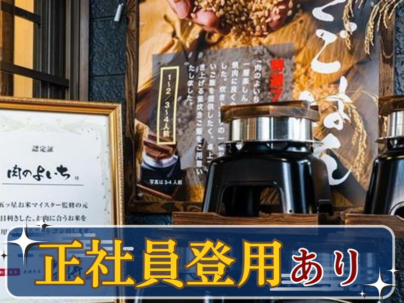 仕事内容 ✅美味しいまかないを200円で食べられる! ✅テレビに取材されるほどの人気店で業績は好調! ✅ゆくゆくは正社員登用も可能です! 20代半ばのフリーターさんも多く在籍中◎ 充実した研修があるので安心です! ―――――――――――――――――――― 仕事内容 ―――――――――――――――――――― ホール業務をお任せします! 具体的には・・・ □お客様のご案内 □料理の配膳・片付け □レジ・ドリンク作成 など 定食やお米の釜は重たくないので 料理提供もスムーズ! オーダーはお客様が席で バーコードで読み取るので 機械の操作を覚えるなど、 ややこしいオーダー取り業務はありません。 ―――――――――――――――――――― 勤務地 ―――――――――――――――――――― 肉のよいち 清須店 愛知県清須市清洲弁天115