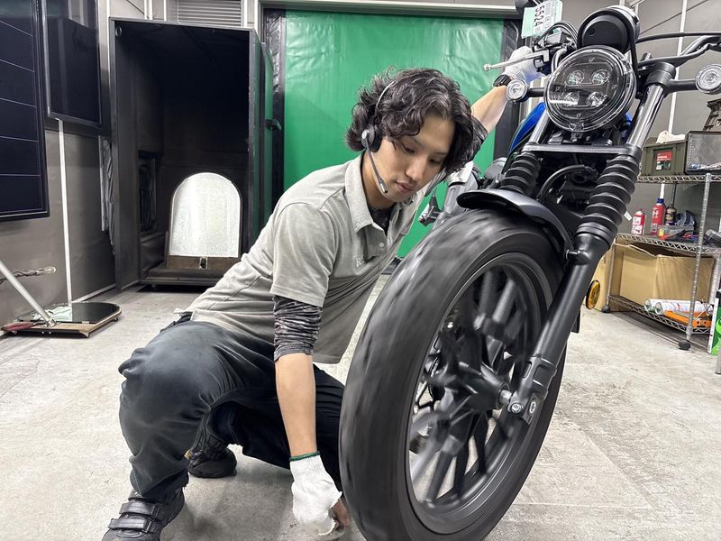 バイクの検査スタッフ